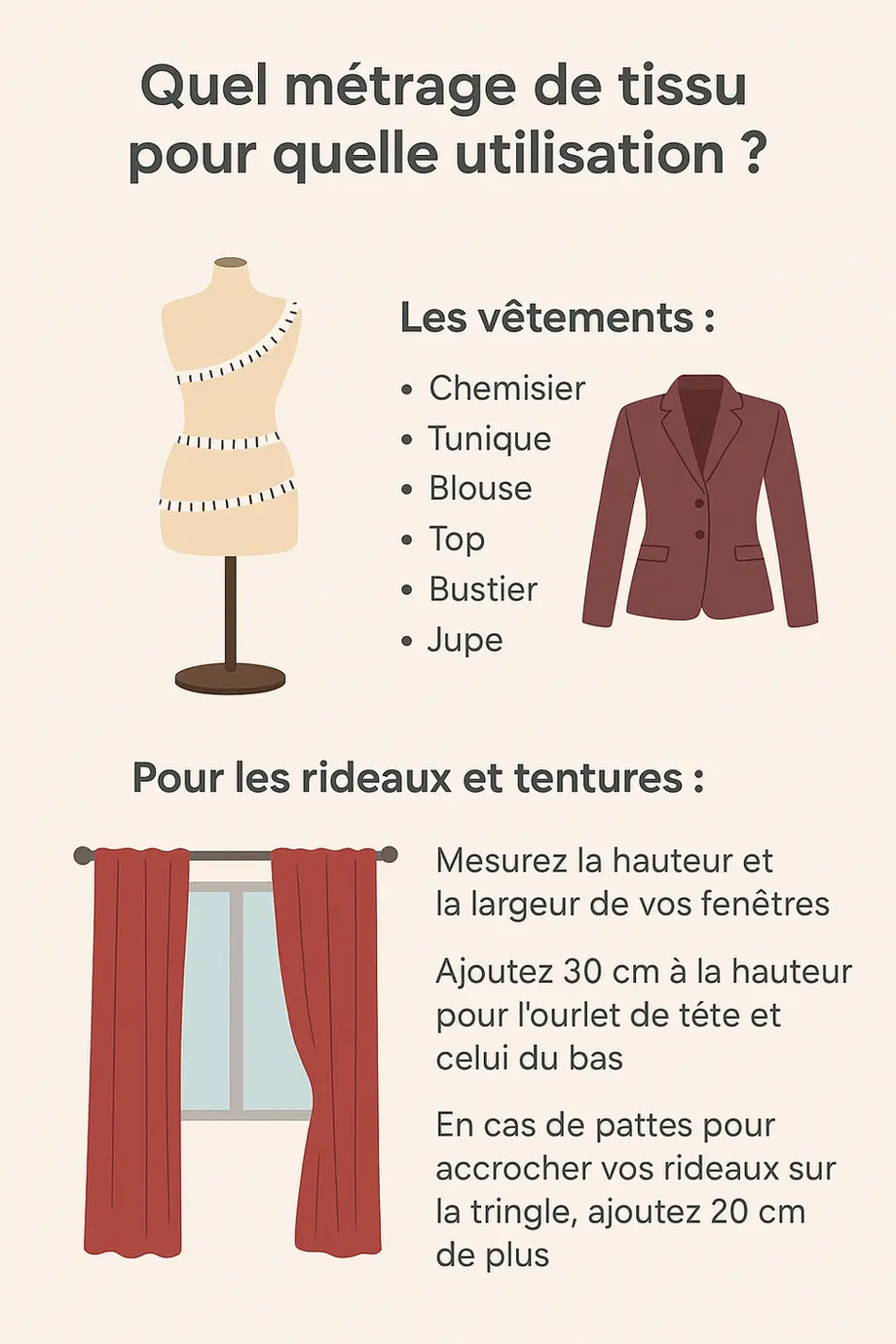de connaitre les dimensions nécessaires en tissu, selon le vêtement à confectionner :