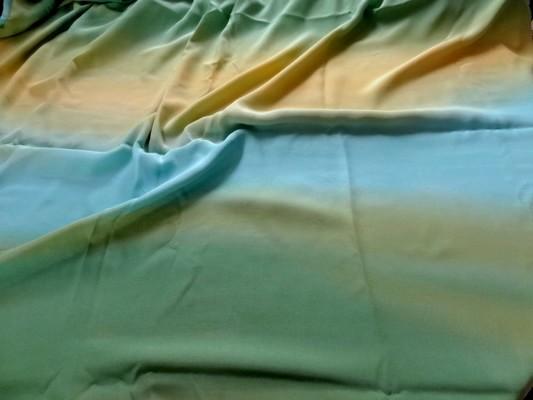 Coupon de mousseline de soie lisse changeante vert et jaune or mesurant 1.20 m de large, plusieurs longueurs...19.99€ TTC