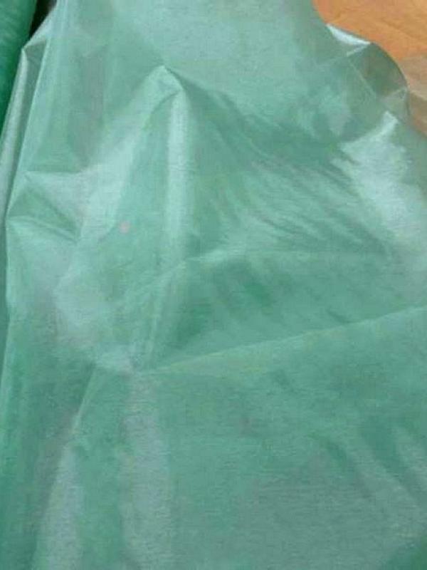 Coupon de taffetas froncé élastiqué vert pâle à reflets mauves mesurant 1.50 m de large et 2 m de longueur...(ref...18.00€ TTC