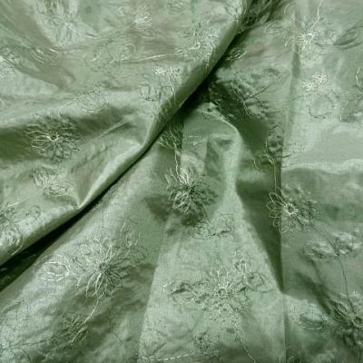 (ref : 1243) Ce tissu est un satin vert amande brodé de fleurs Il est assez fin et souple l'aspect...8.00€ TTC
