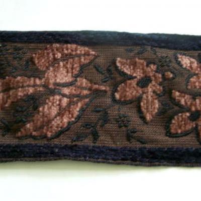 Ruban "Lili" velours chenillé beige sur fond marron café