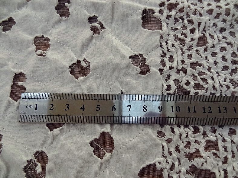 coupon de jersey dévoré blanc sur résille fine Les 2 tissus sont cousus ensemble en quadrillage...