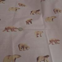Coupon de 1.10 m de cotonnade vieux rose imprimé ours polaires en 1.45 m de large...