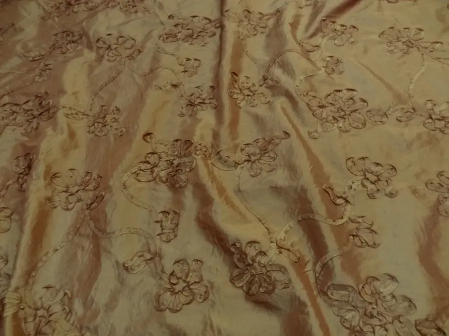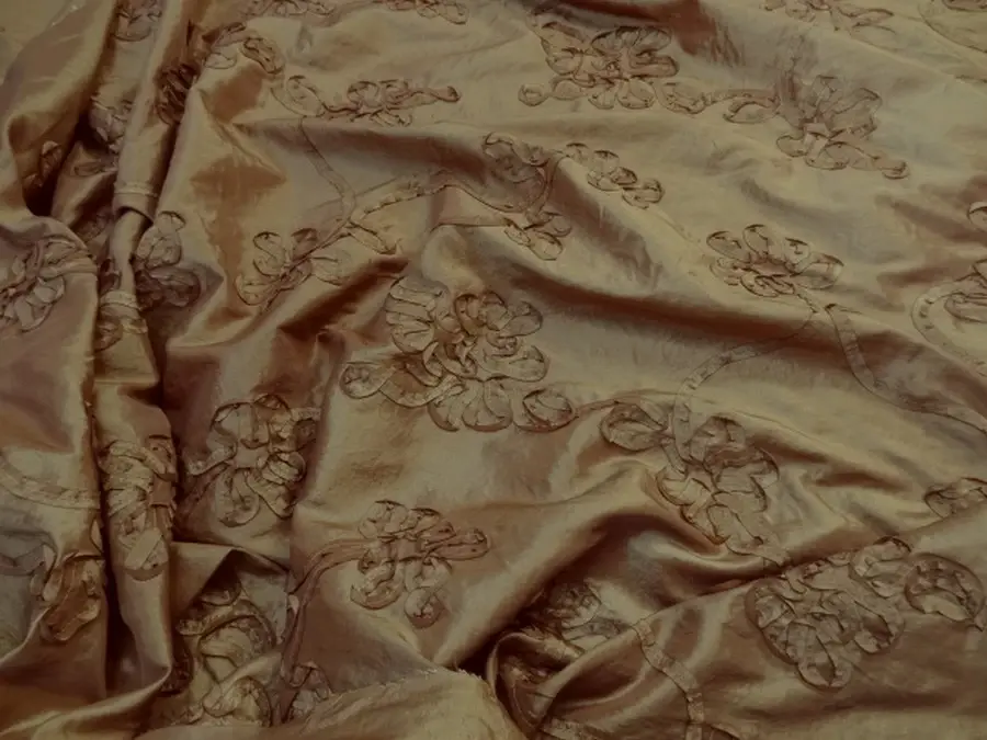 1,30 m Taffetas or bronze brodé de fleurs laser Nouveau