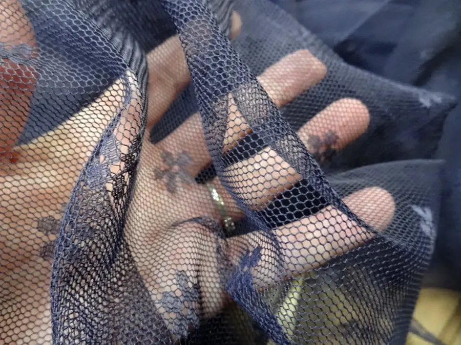 dentelle noire fleurs et volutes en lycra extensible dans les 2 sens elle est assez fine et très souple...(ref...8.00€ TTC