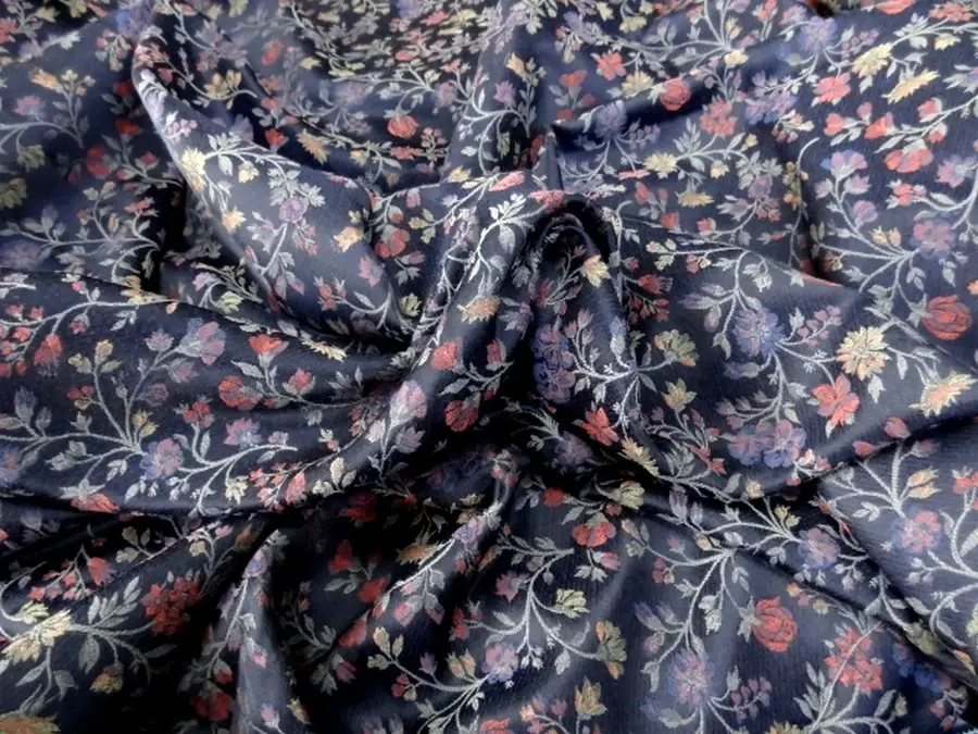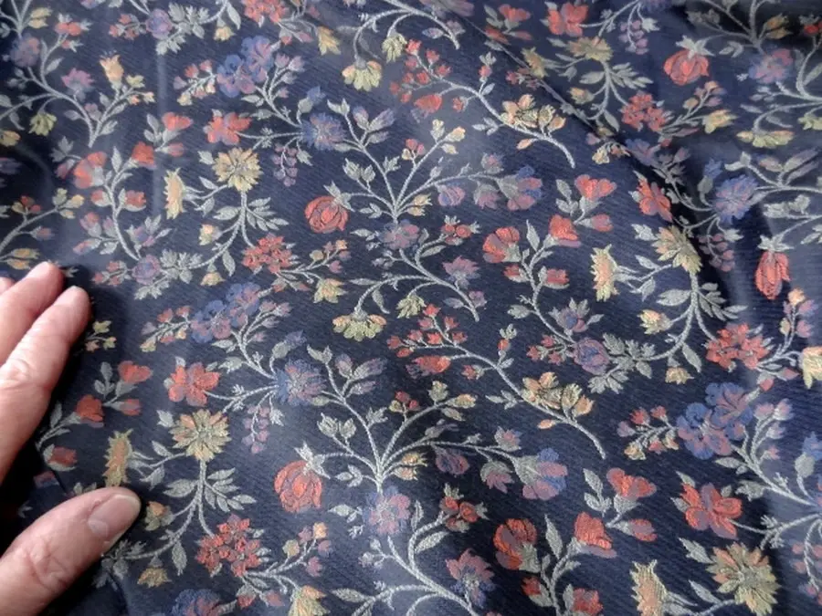 1.80 m Satin damas coton bleu de minuit fleuri Nouveau