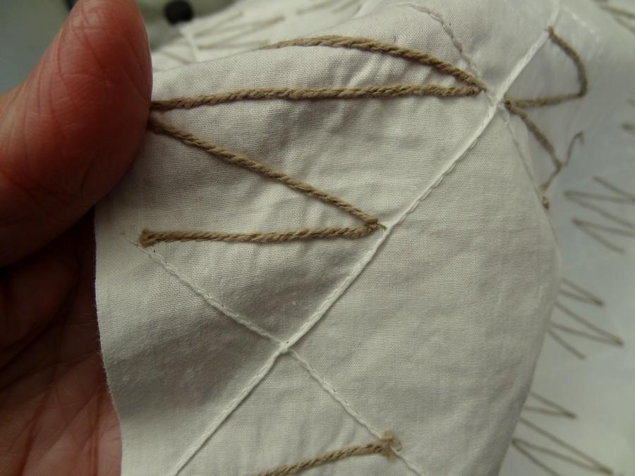 2.60 m Coton blanc cassé surpiqué motif carré zigzag lin
