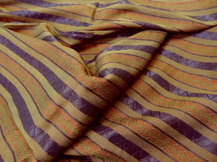 2 m coton viscose jacquard rayé teintes aubergine et kaki Nouveau