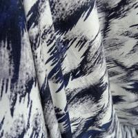 jersey viscose lycra motif abstrait bleu outremer, noir et gris Tissu fin, sans transparence, très souple, l'extensibilité est dans les 2 sens..