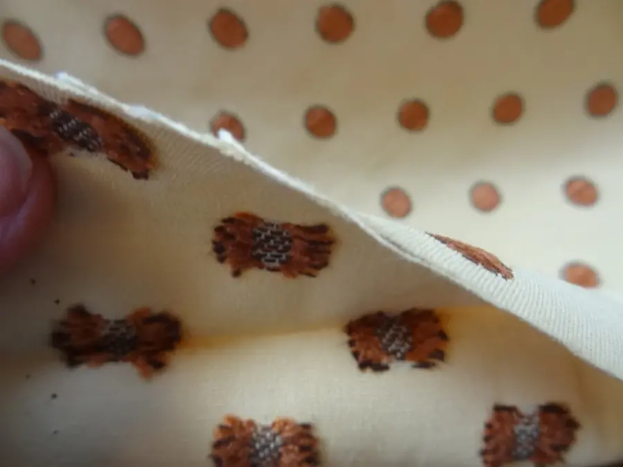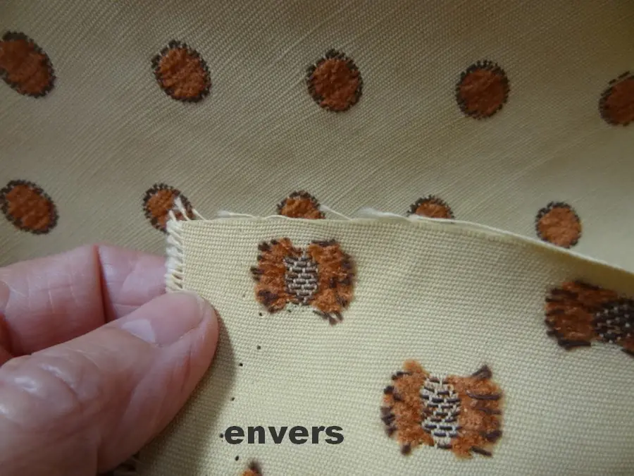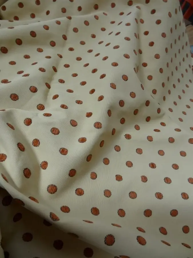 coupon d'ottoman jaune pâle brodé de pois en velours