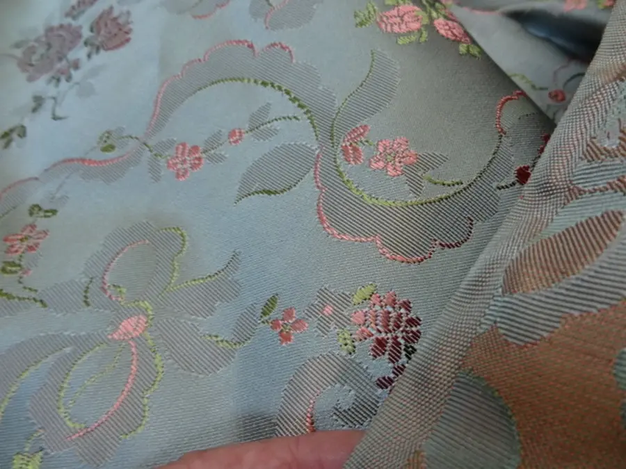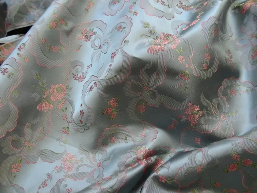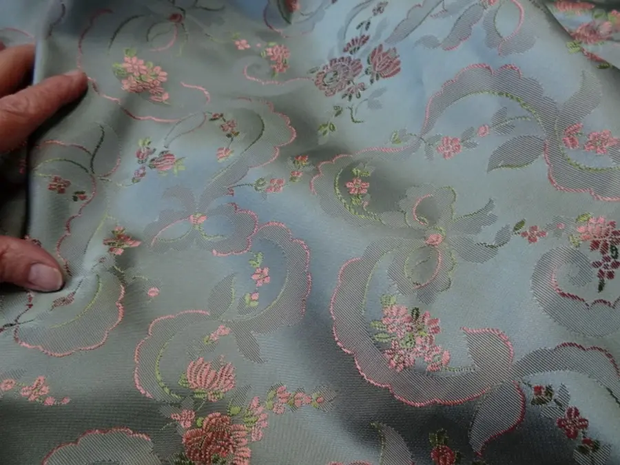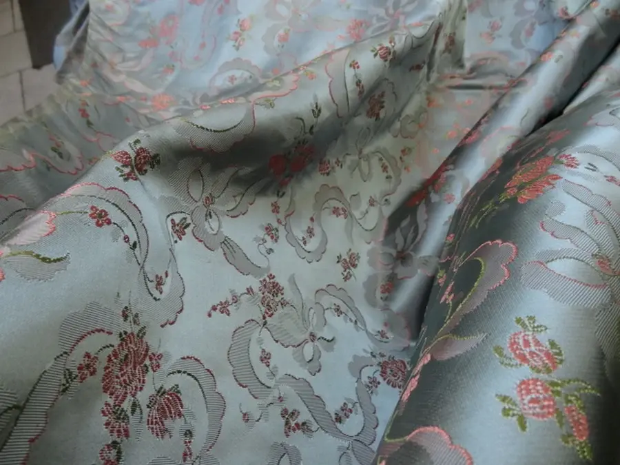4.60 m Satin d'ameublement damassé motif classique bleu givre de belle qualité Idéal pour faire des tentures ou en ameublement...