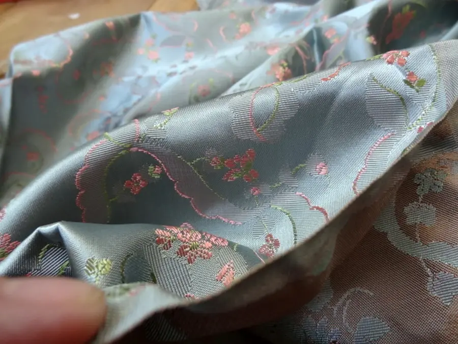 4.60 m Satin ameublement damassé bleu givre Nouveau