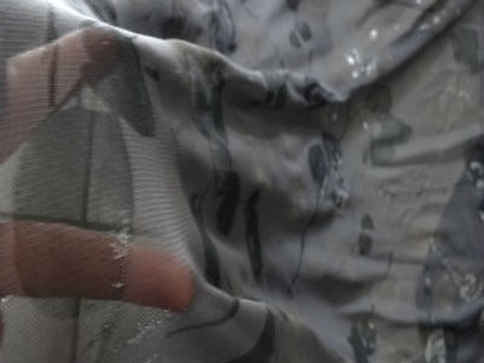 4.80 m résille lycra gris souris imprimé feuilles argentées