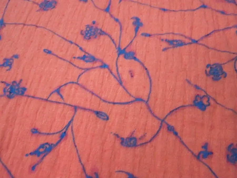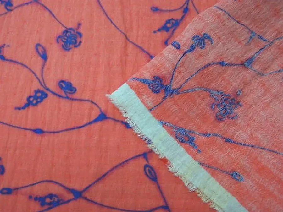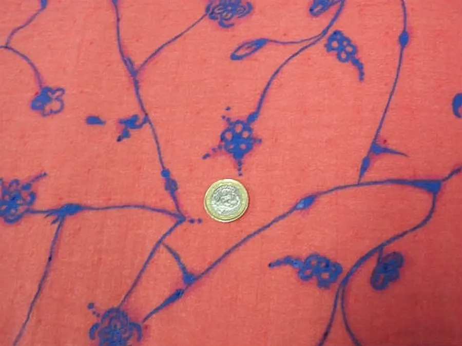 Coton mélangé façonné saumon motif fleurs bleu outremer Il mesure 1.25 m de large...