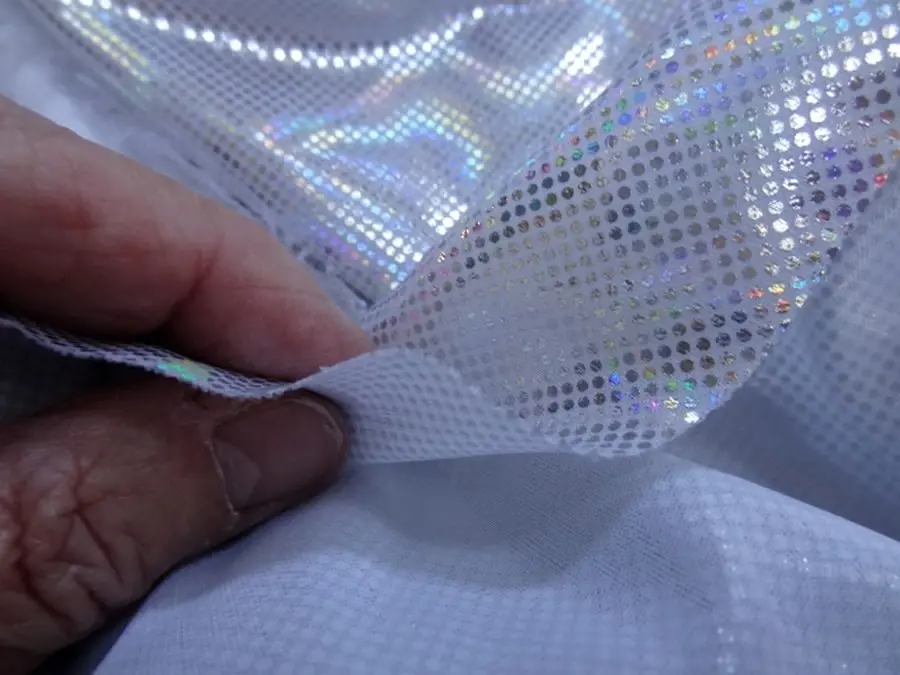 Coupons lycra fin blanc effet laser hologramme Nouveau