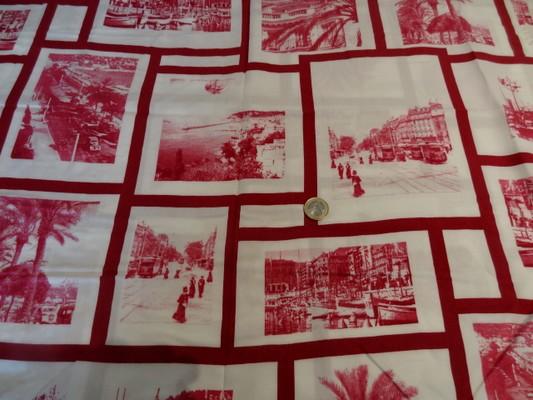 Coupon de coton viscose imprimé cadres cartes postales fuchsia fond blanc tissu fin et fluide...(ref...10.20€ TTC
