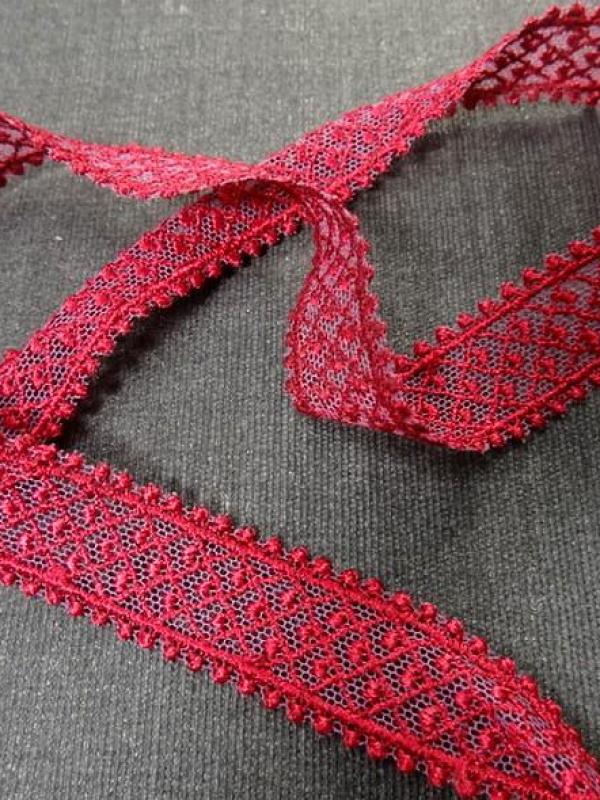 Dentelle festonnée en 100% lin teinte rose amarante Elle mesure 10 cm de large....(ref : BU-3152) Dentelle...5.40€ TTC