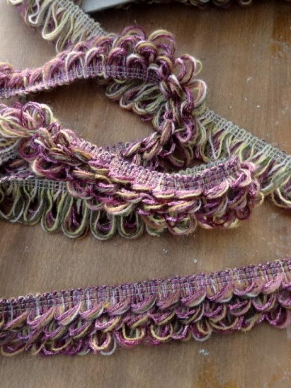 Ruban tressé à coudre ou à nouer rose pale, vieux rose et mauve La tresse de base mesure 2 cm de largeur...(réf...3.70€ TTC