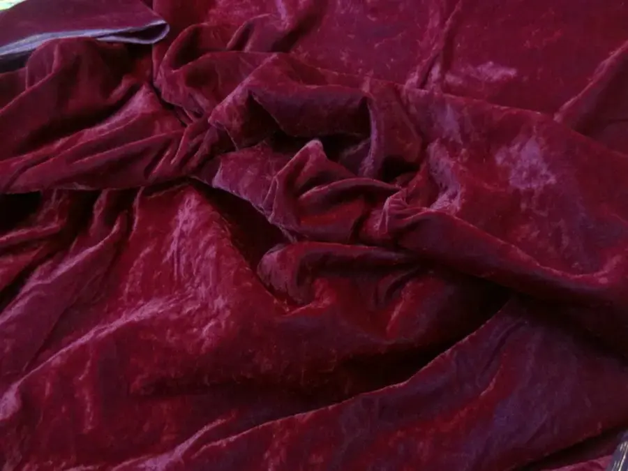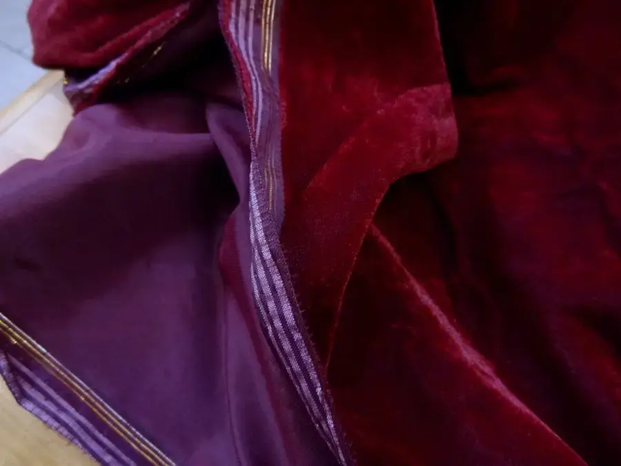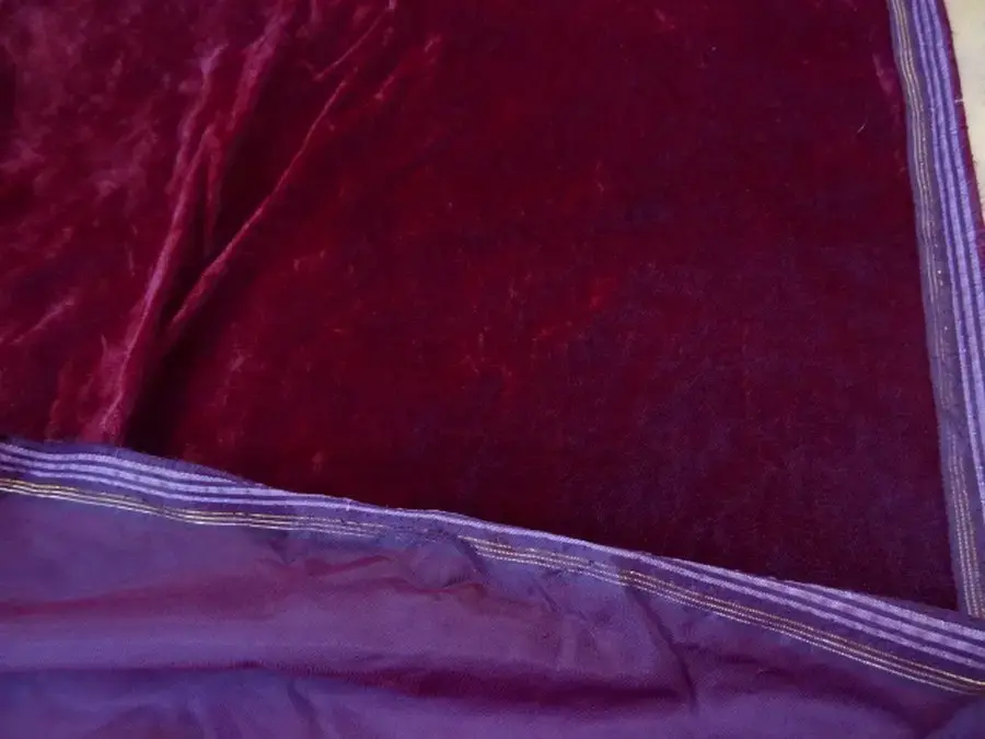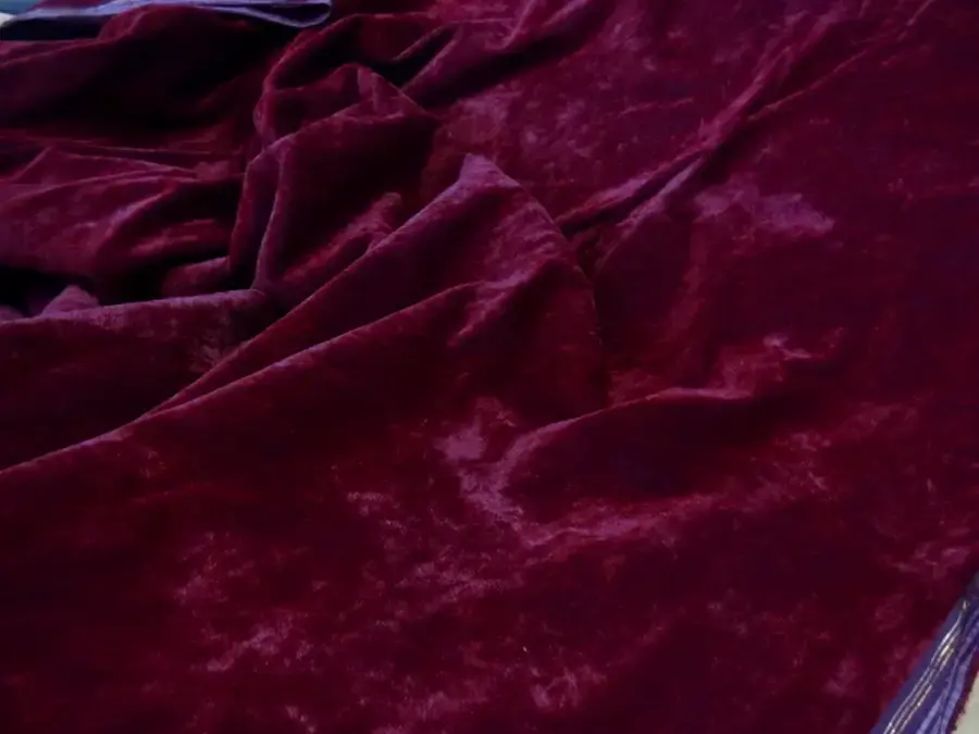 Coupon de 3.50 m de velours ras aspect frappé de teinte pourpre en 1.12 m de large