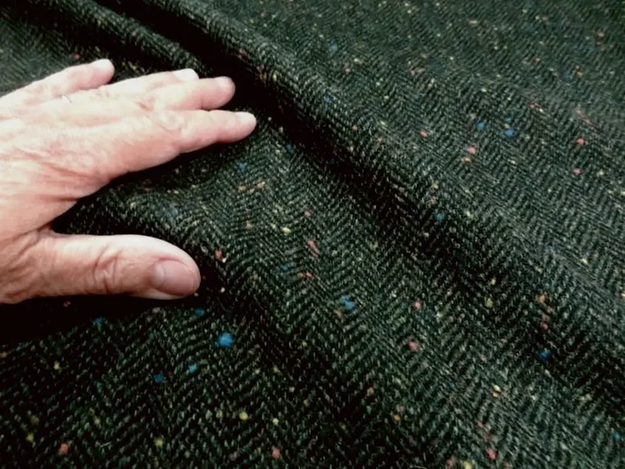 lainage tweed kaki noir chiné à chevrons en 1.50 m de large Prix : 16.49 euros le mètre