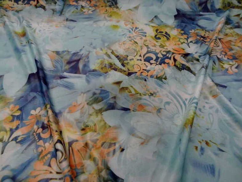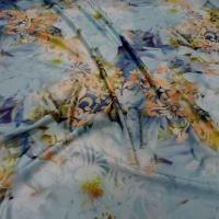 Lycra fleurs de nénuphar teinte bleu Assez fin et extensible dans les 2 sens Ce lycra peut servir pour la confection...