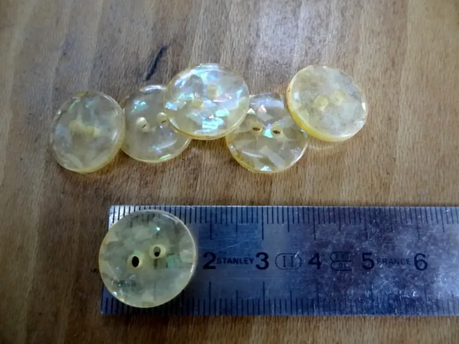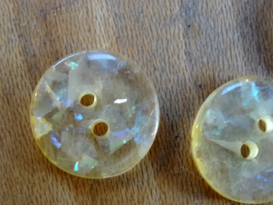 lot de 6 boutons plastique jaune paille transparent pailleté 17 mm