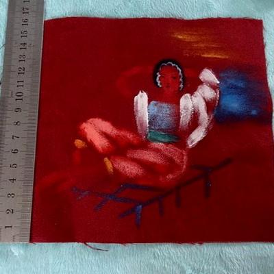 - 🎨 Pièce de patchwork en suédine peinte à la main – un élément décoratif unique.
