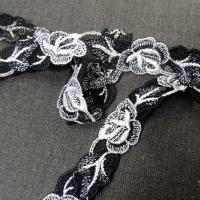 galon brodé de fleurs noir et blanc sur résille Il mesure 22 mm de largeur environ....