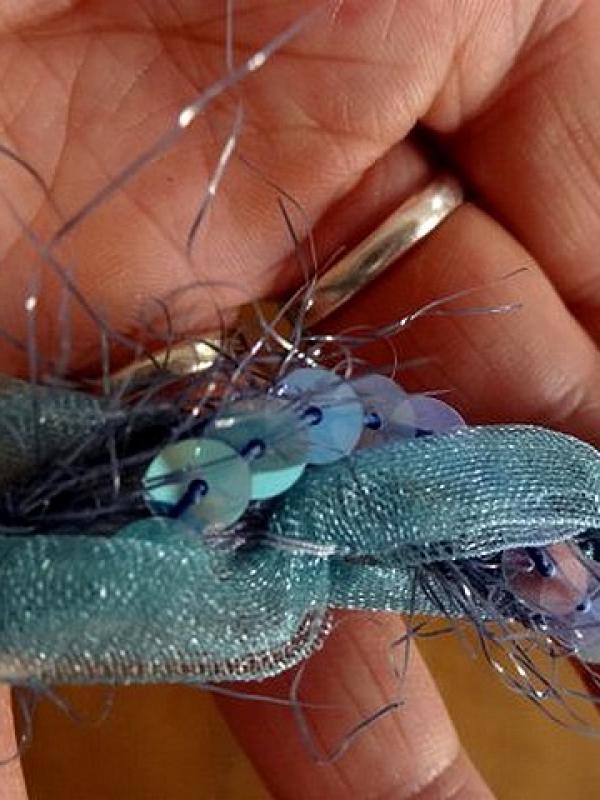 Galon " Rio" vert d'eau et blanc en résille et sequins