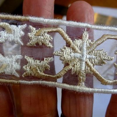 Broderie "Croix" camaïeu blanc-beige sur organza