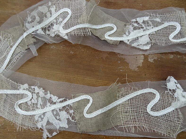 Galon "Ariane" lin et dentelle sur résille blanc cassé