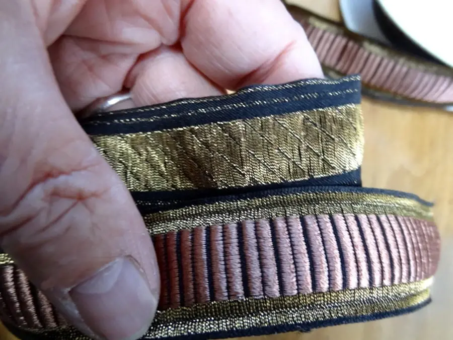 Galon type Gros grain marron glacé bordé de lamé vieil or Nouveau
