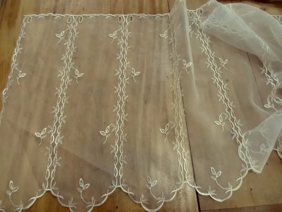 Brise-bise blanc cassé organza brodé Hauteur 58 cm Nouveau