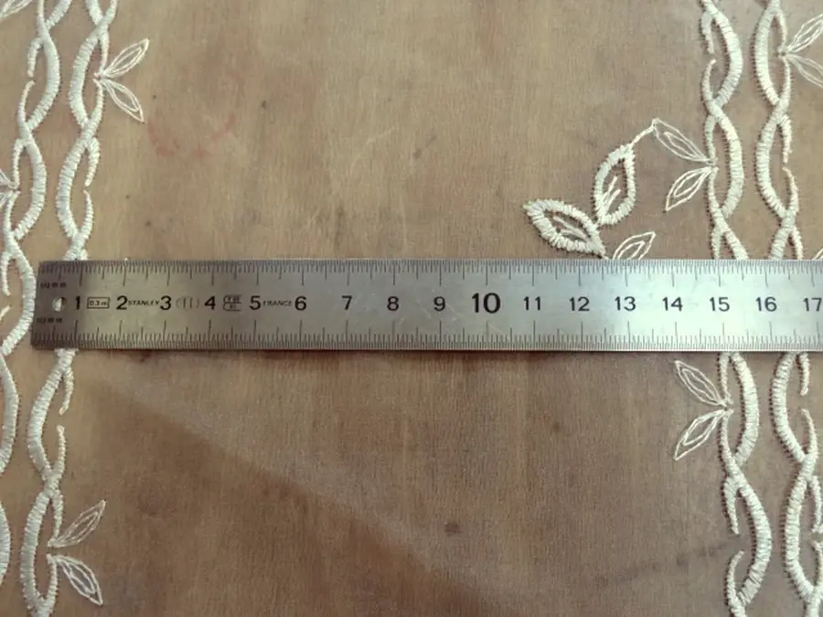 Brise-bise blanc cassé en organza brodé à poser sans couture Il mesure 58 cm de hauteur VENDU par pan de 16 cm...