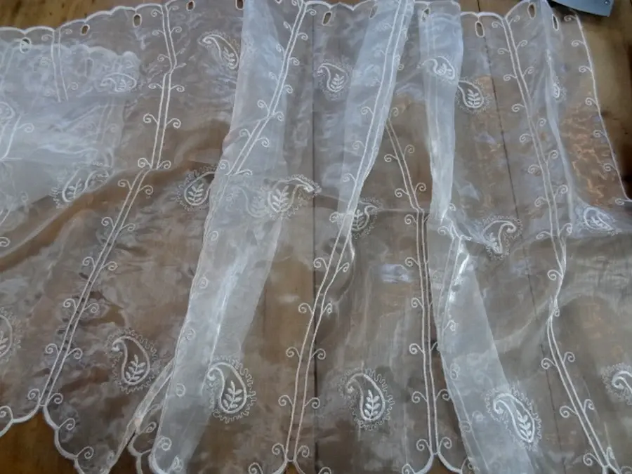 Brise-bise blanc cassé organza brodé Hauteur 58 cm Nouveau