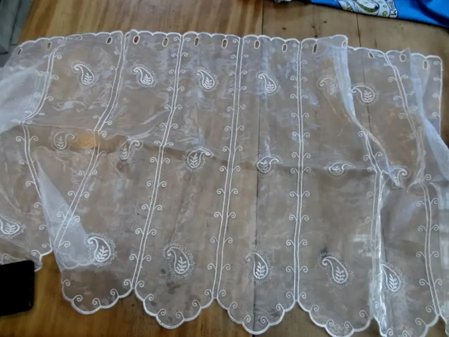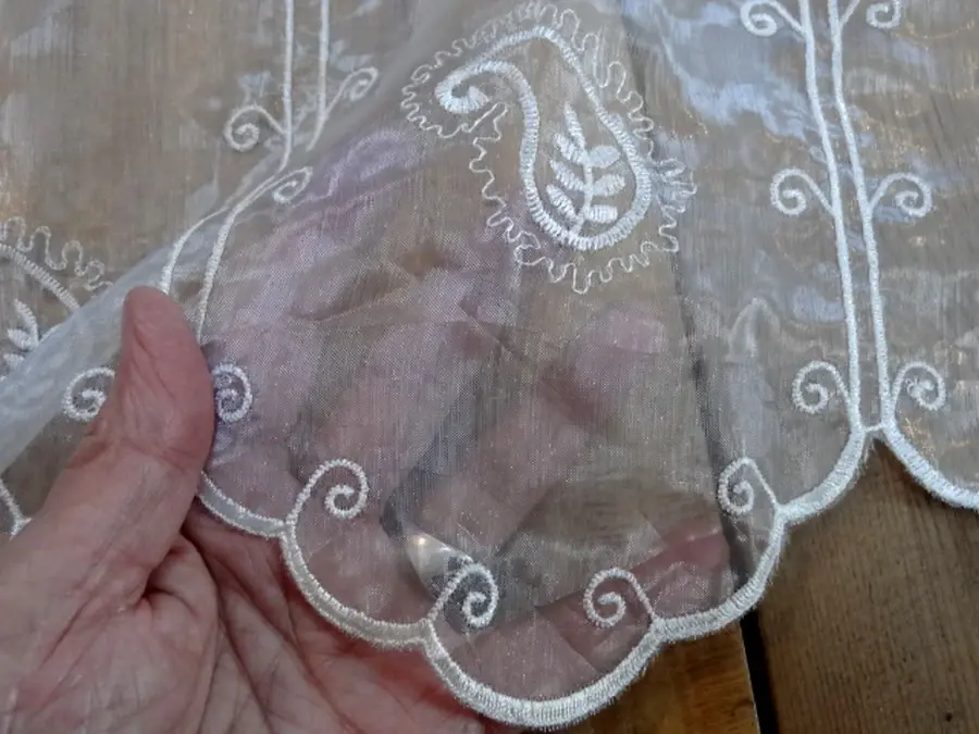 Brise-bise blanc cassé en organza brodé à poser sans couture Il mesure 58 cm...0.90€ TTC