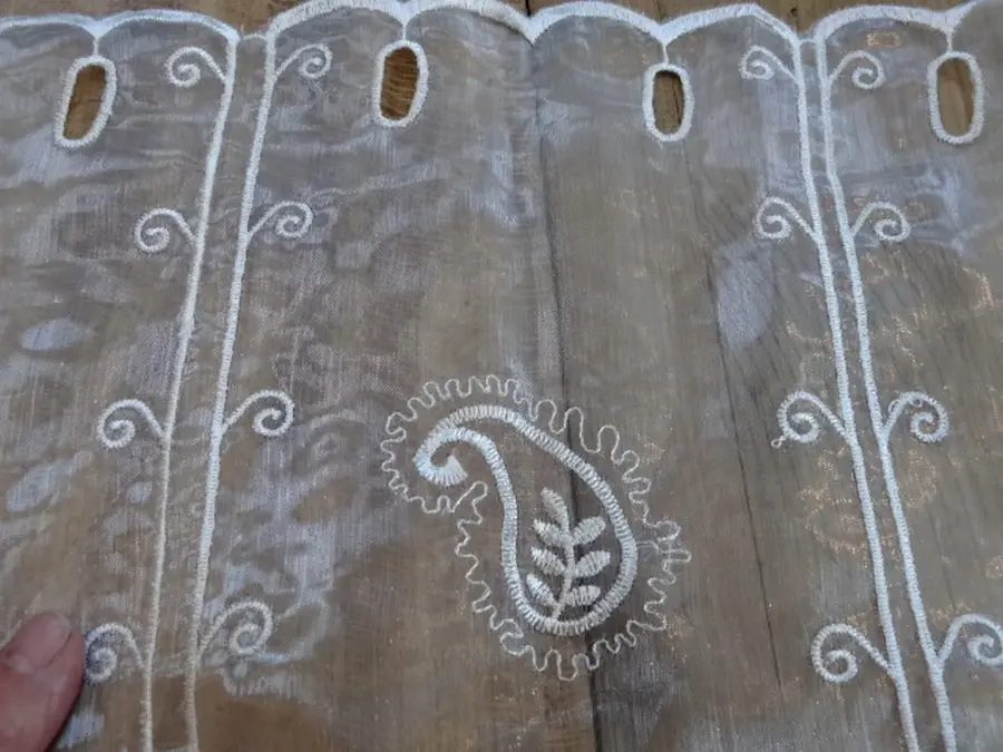 Brise-bise aspect voile de lin brodé Il mesure 52 cm de large ou hauteur VENDU PAR 50 cm...(ref : CQ-3498) Brise-bise...3.30€ TTC