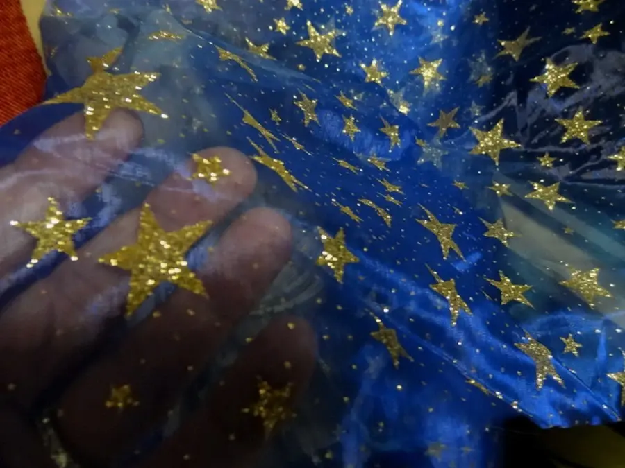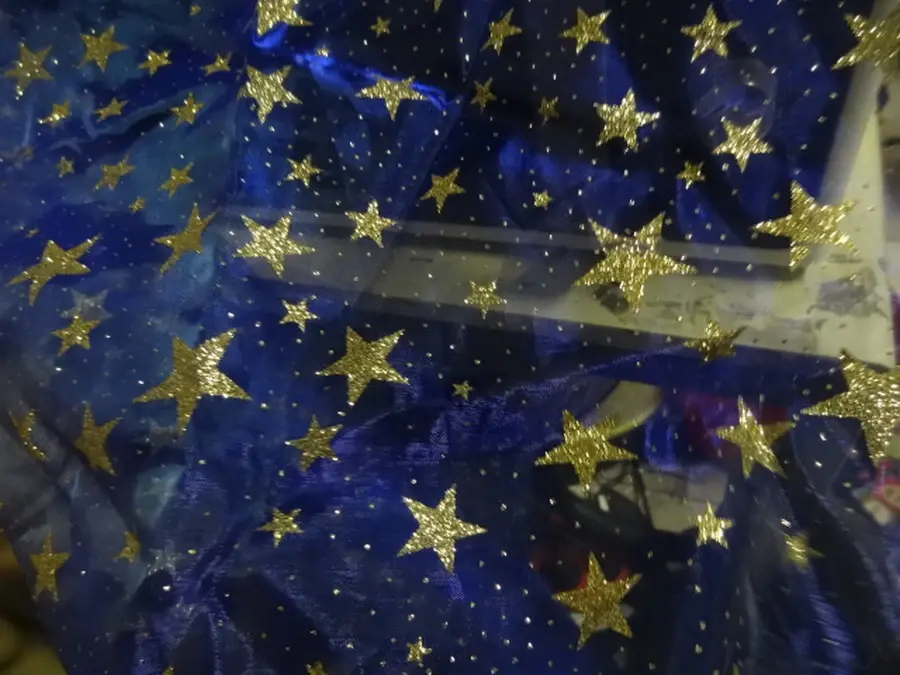 Organza bleu foncé étoiles scintillantes or Nouveau