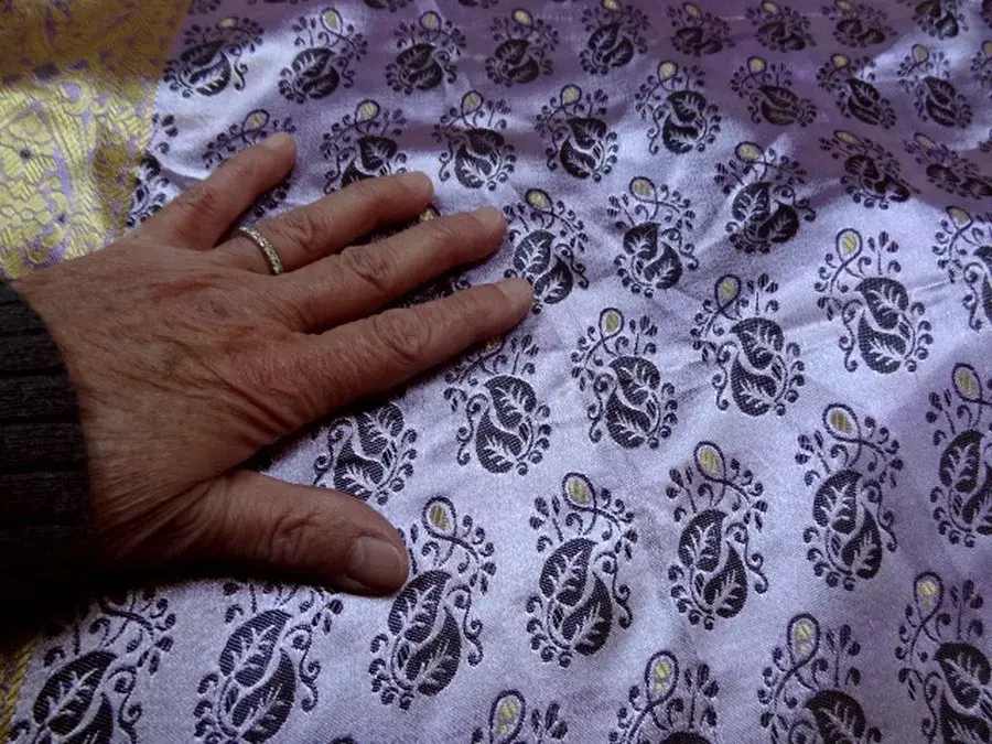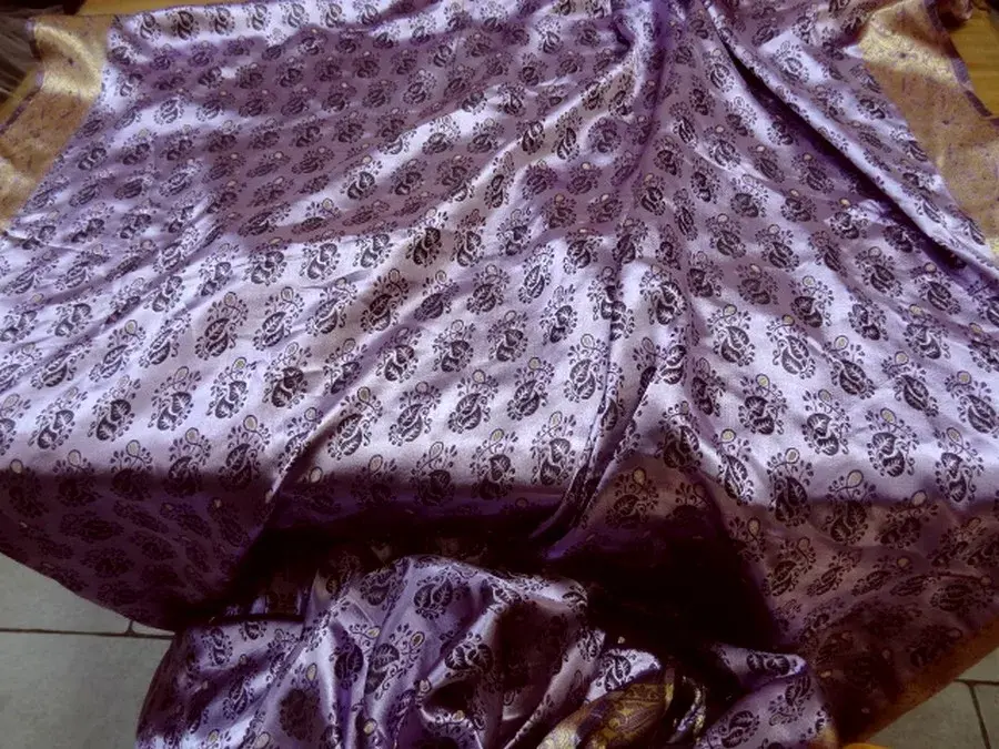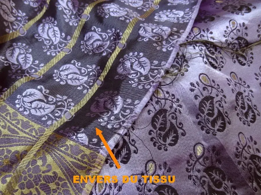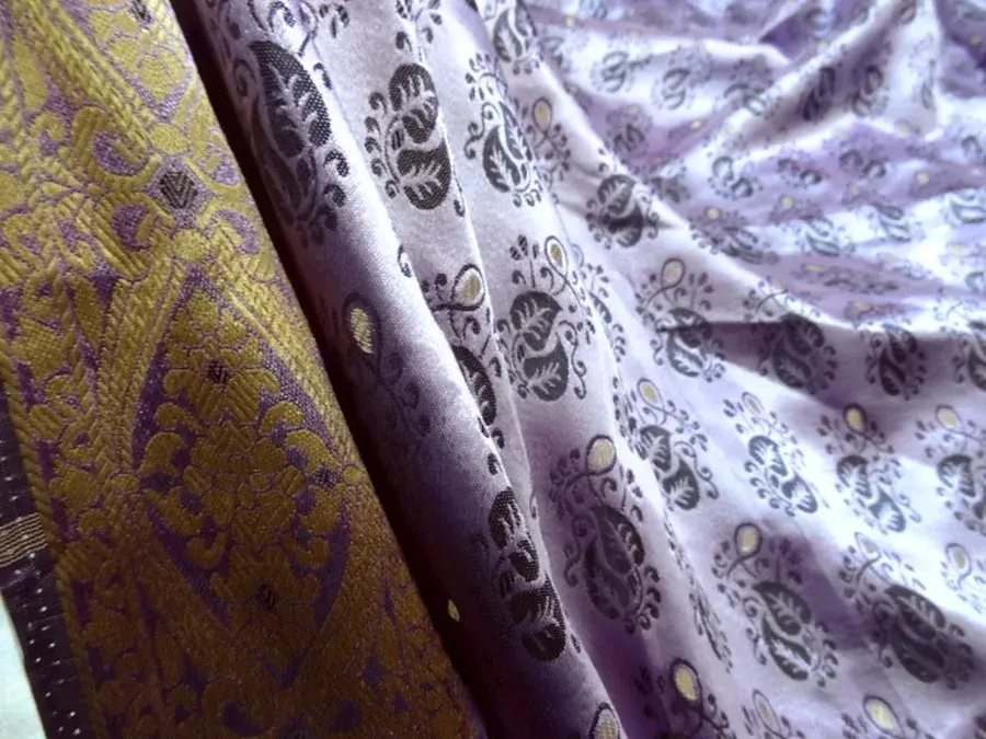 Satin jacquard parme et vieil or motif feuillage Nouveau