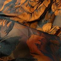 Taffetas damassé mordoré et rose orchidée motifs larges roses