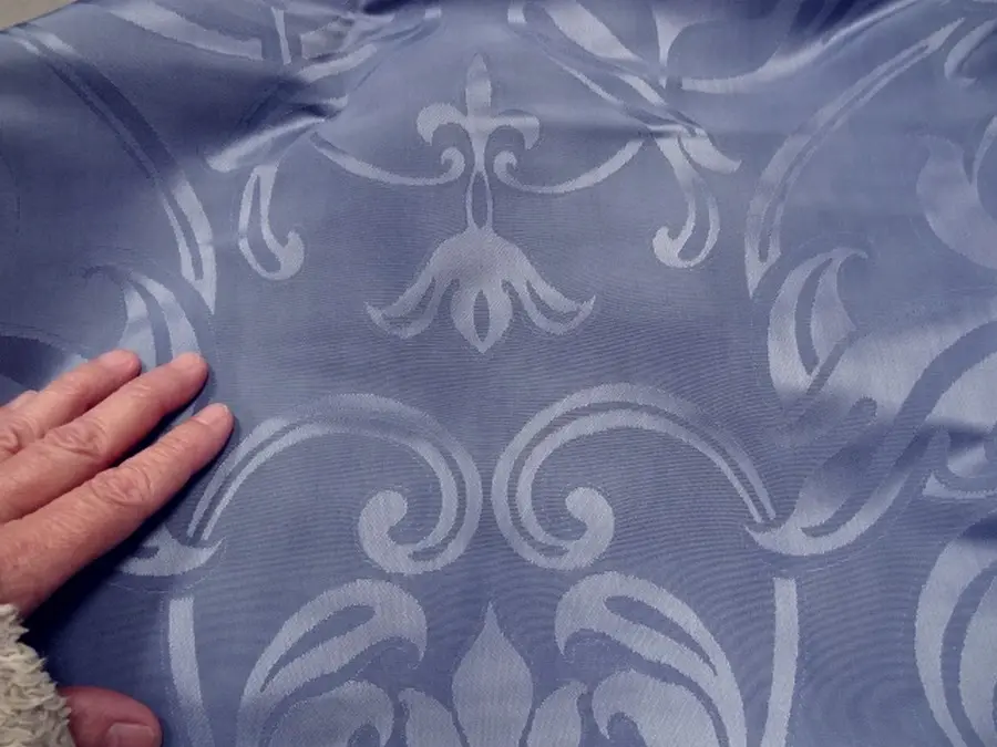 tissu d'ameublement bleuet damassé polyester pour faire des tentures ou en ameublement...